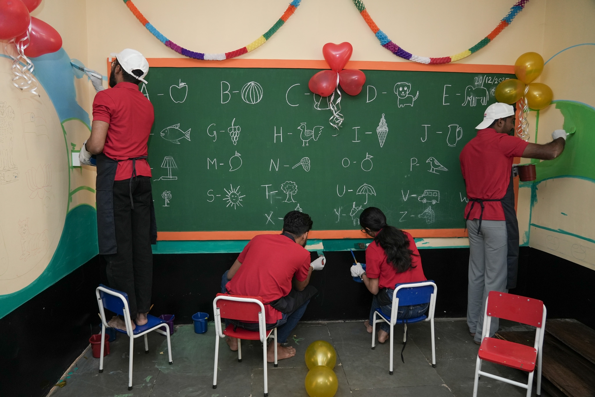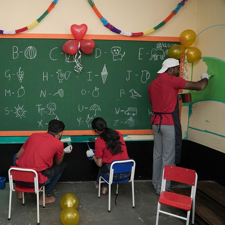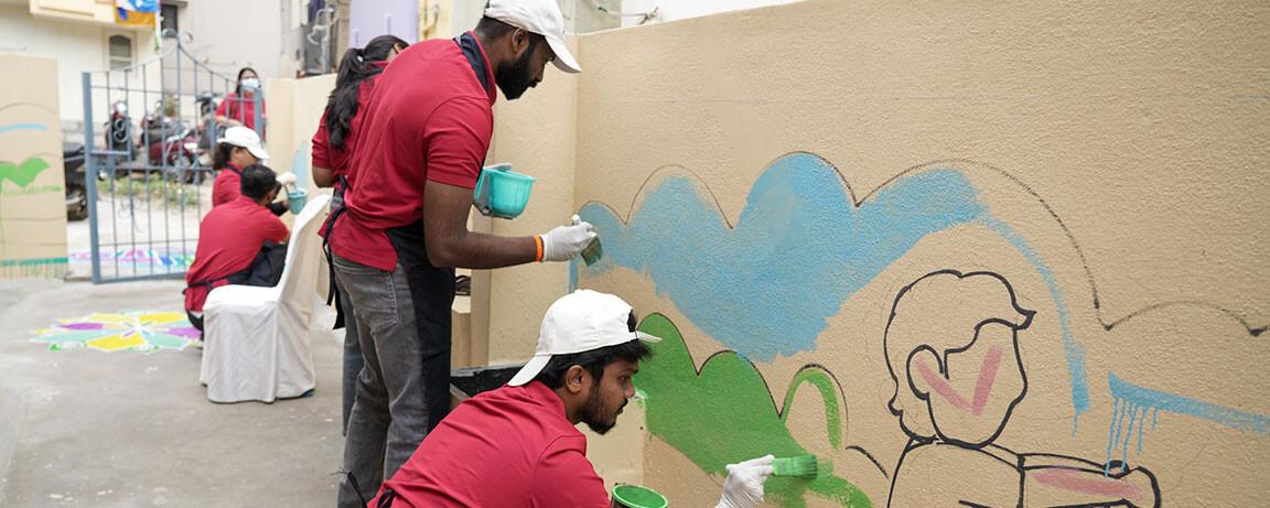 In Bangalore, associates partnered with United Way Bengaluru to refurbish or build three Anganwadi centers, which serve as cornerstones of educating and caring for children in rural India. In one of the centers, associates painted a mural to add color, bring joy, and create an engaging space for the children served there.