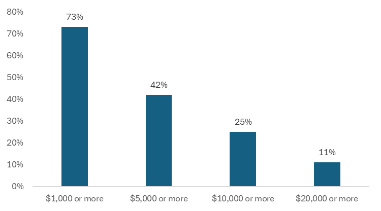 Source: Empower “Credit Card Debt Survey”, July 2025. Question: How much do you currently owe in credit card debt across all cards? Please enter your response rounded to the nearest dollar in the box below. If you are unsure, please give your best estimate.